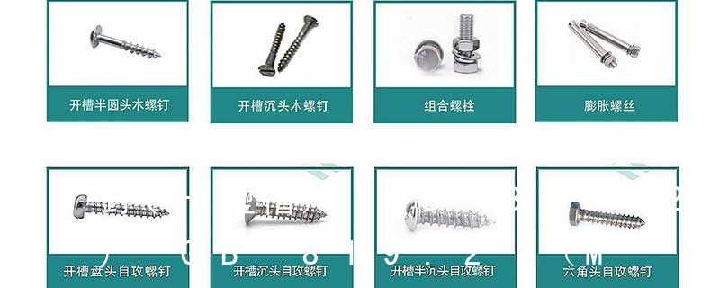十字槽沉頭螺釘的國家標準是GB/T 819.1-2000十字槽沉頭螺釘 第1部分:4.8級(2001-02-01實施,代替GB/T 819-1985)和GB/T 819.2-1997十字槽沉頭螺釘 第2部分:8.8級、不銹鋼及有色金屬螺釘(1998-04-01實施)。 不銹鋼及有色金屬螺釘 本部分規定了8.8級、不銹鋼及有色金屬十字槽沉頭螺釘的型式尺寸、技術條件和標記。本部分適用于螺紋規格為M2~M10、性能等級為8.8、A2-70、CU2、CU3、產品等級為A級的H和Z型十字槽沉頭螺釘。