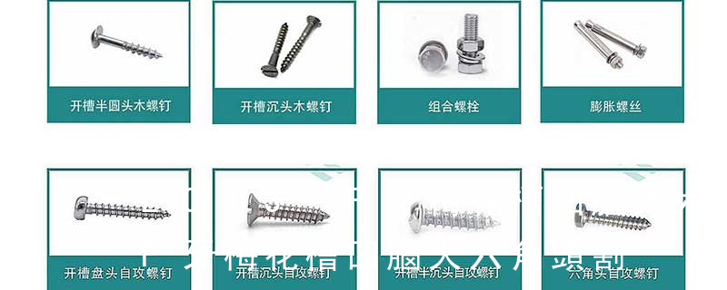 1.機(jī)螺釘 2.自攻螺釘 3.鉆尾螺釘 4.墻板釘 5.纖維板釘 6.木螺釘7.六角木螺釘 8.不脫出螺釘 9.組合螺釘 10.微型螺釘 11.家具螺釘 12.電子螺釘頭型:1.六角頭(hexagon head) 2.六角頭法蘭面(hexagon head with flange) 3.