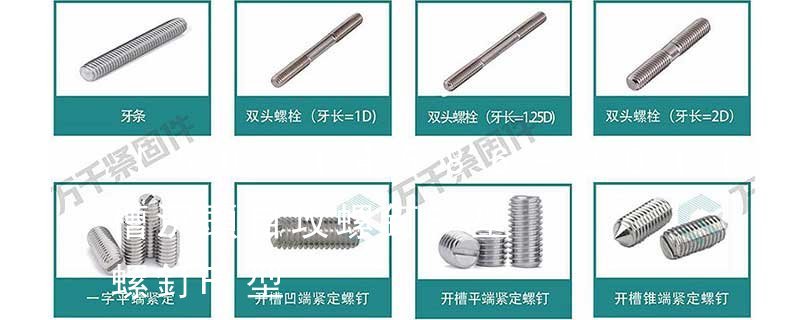 最常見的是六角頭螺栓 國標GB5783 GB5782 德標Din933 Din931 (8.8級粗牙外六角螺栓)圓柱頭內六角螺釘 國標GB70.1 德標Din912 還有很多像什么盤頭十字螺釘 沉頭十字螺釘 開槽盤頭螺釘 開槽沉頭螺釘等等很多種。螺母的種