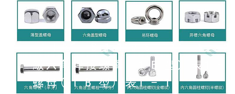 六角螺母按照公稱厚度分為I型、II型和薄型三種。8級以上的螺母分為I型與II型兩種型式。I型的六角螺母應用最廣,I型螺母又分A,B,C三級,其中A級和B級螺母適用于表面粗糙度較小,對精度要求高的機器、設備和結構上,而 螺母依據屬性主要有國標(GB)、德標(DIN)、國際標準(ISO)、日標(JIS)、美標(ASTM/ANSI)等標準。其中、國標、德標、日標用M表示(例如M8、M16),美制、英制則用分數或#表示規格(如8#、10#、1/4、3/8)。